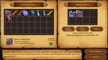 In the story you'll take the role of the "Master Thief" (you can choose if to play as male or female, and if to be a human or elf). A mysterious masked figure recruits this foreigner skilled in thievery and stealth, entrusting them with a crucial mission: to establish a Thieves’ Guild in Dingirra. To do that, the mysterious figure offers a starting amount of money and recruits.