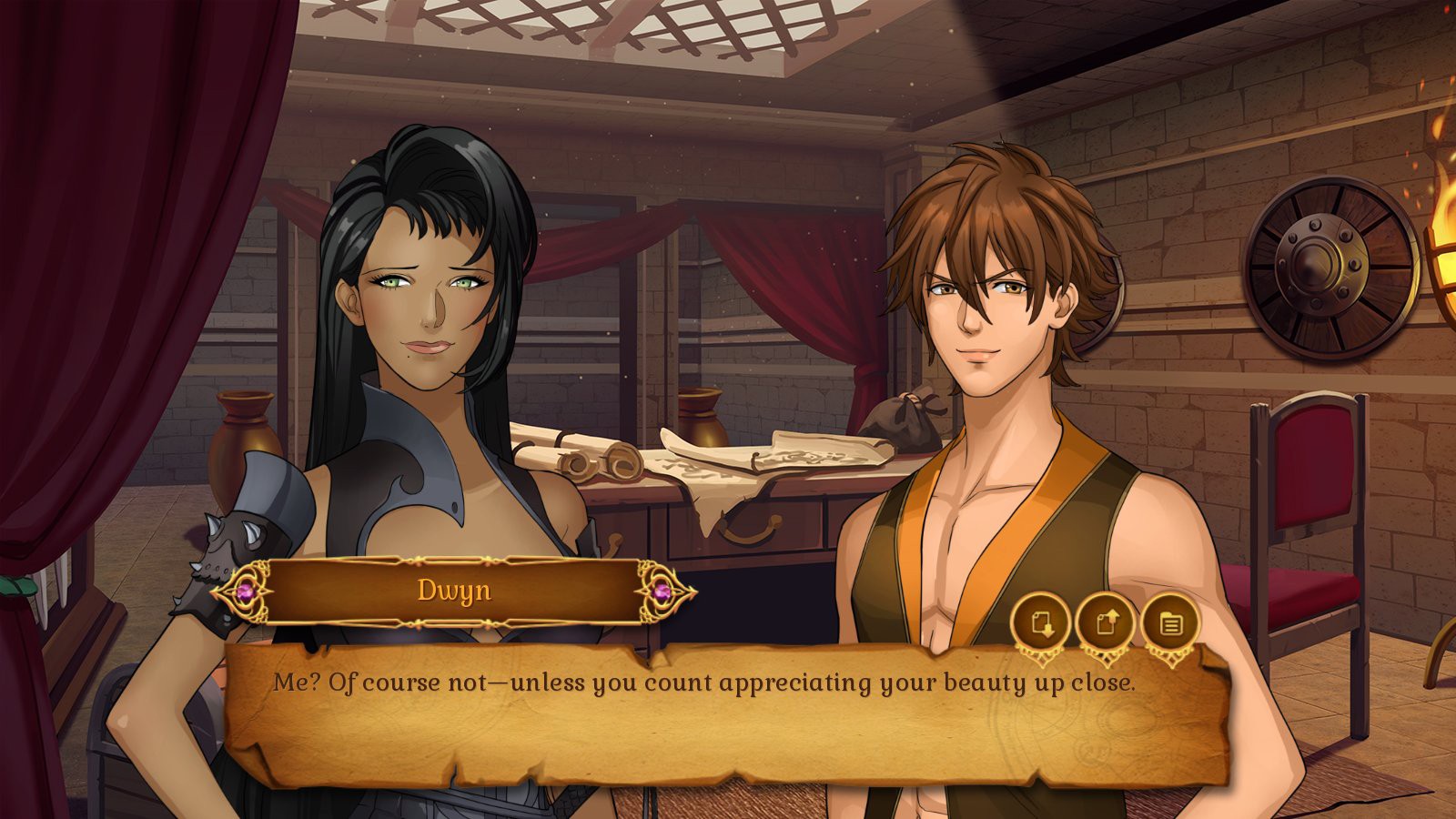 Yasemin, the Tavernkeeper – a gorgeous and curvy woman in her thirties. She runs the "Traveler's Delight", a place where you can drink, gamble, and find company. She also knows everything that goes on in Dingirra, and she can help you with information and quests. But don't be fooled by her sweet appearance, Yasemin is a ruthless manipulator who can blackmail anyone she wants.